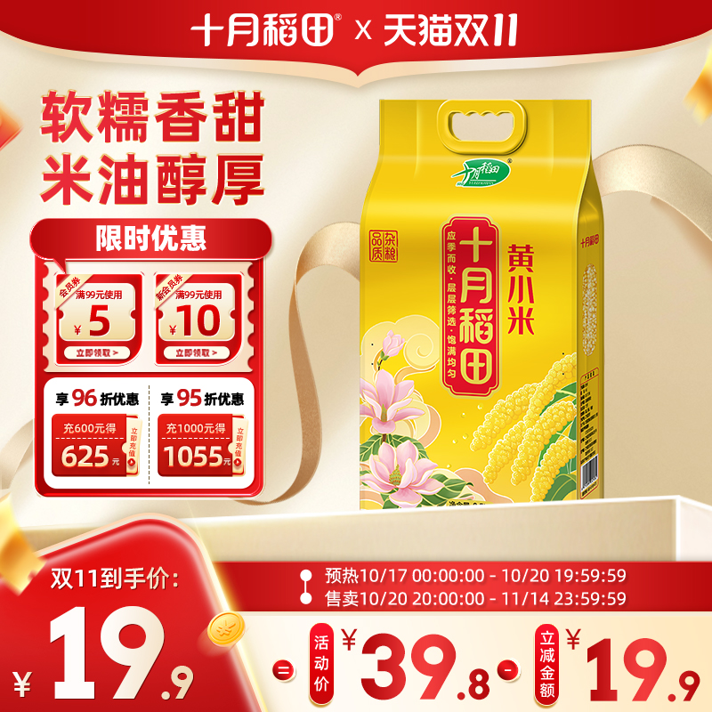 -> 十月稻田黄小米2.5kg小米5斤熬粥蒸饭米油丰厚香糯米香浓郁官方