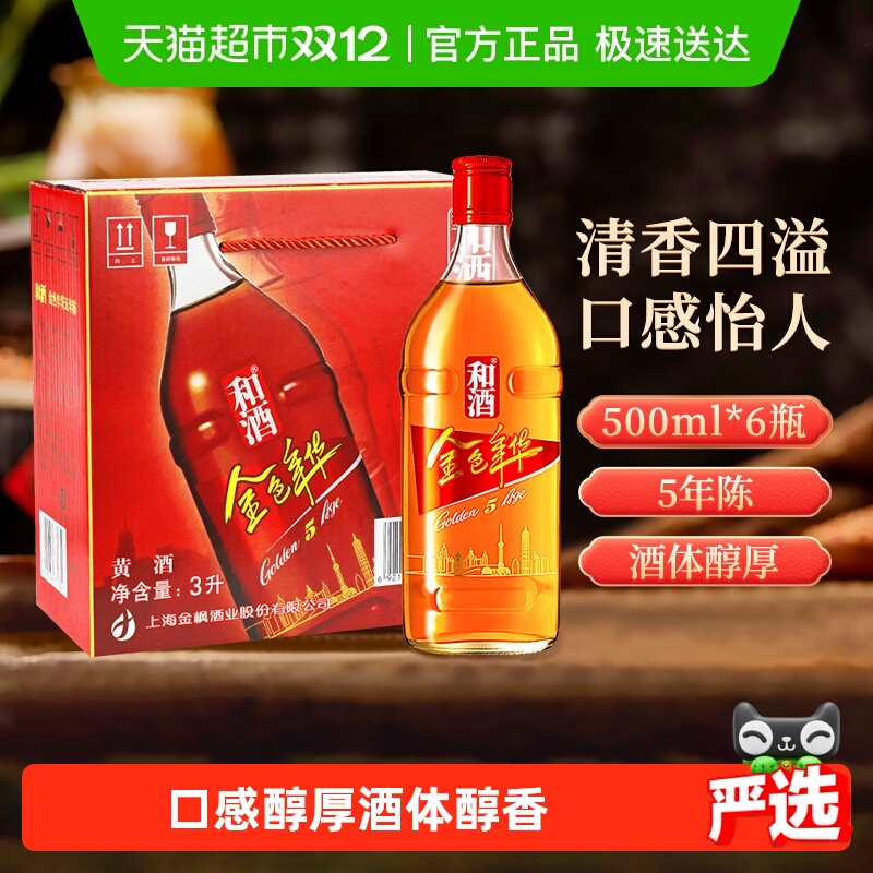 和酒 黄酒上海老酒 金色年华五年陈5年 黄酒整箱500ml*6瓶装