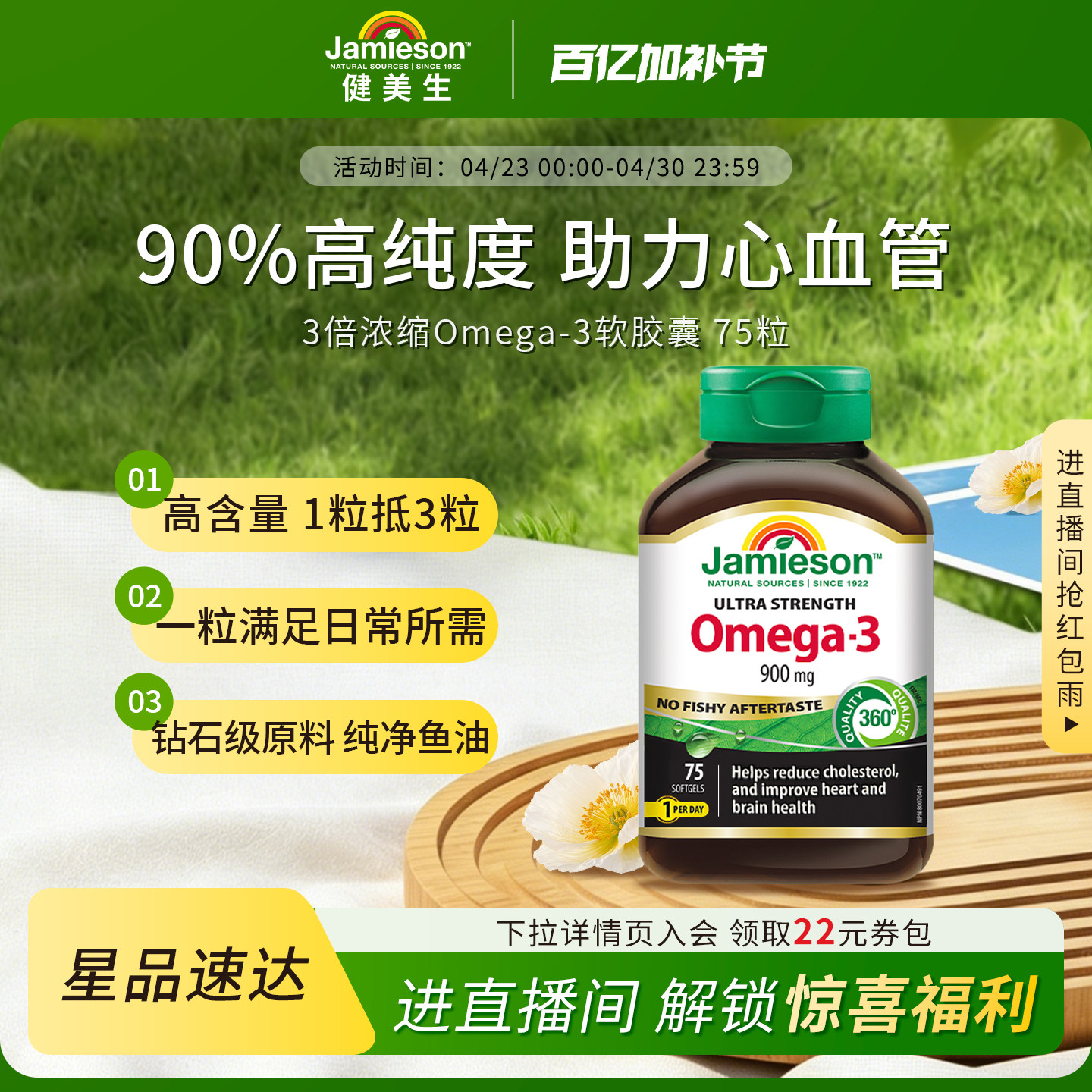 Jamieson健美生加拿大三倍深海鱼油Omega-3软胶囊dha成人欧米伽三