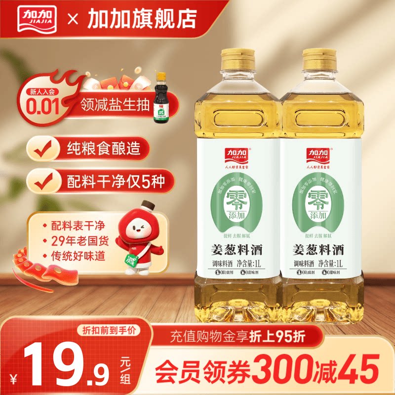 -> 加加葱姜料酒1L调味去腥蒸鱼炖肉提鲜厨房10度料酒家用调味品