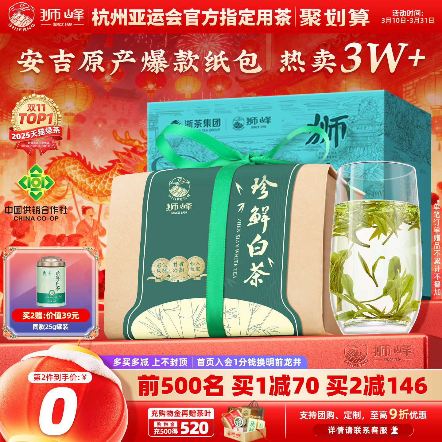 2025新茶安吉狮峰牌白茶明前特级茶叶自己喝送礼绿茶正品官方旗舰