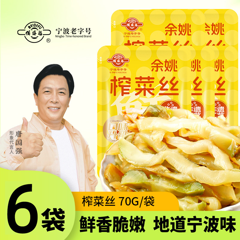 -> 备得福余姚榨菜丝70g*6包鲜香爽口下饭菜 微咸佐餐配粥即食