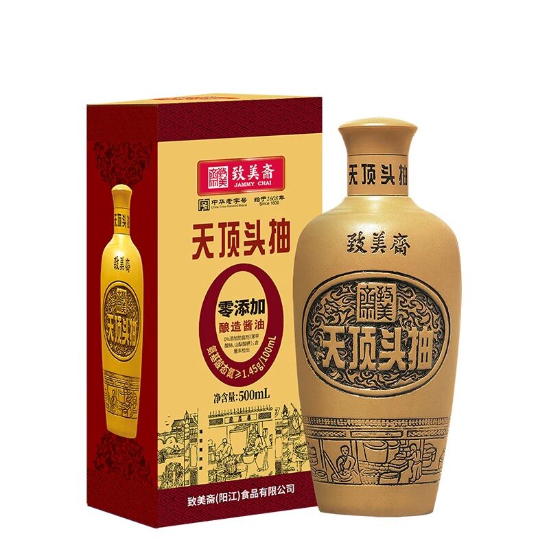 -> 致美斋天顶头抽500ml特级生抽黄豆酿造酱油 皇国酱广州特产老字号