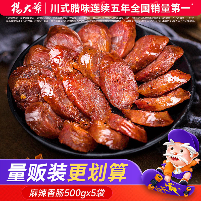 -> 杨大爷麻辣香肠5斤装 辣味腊肠四川特产农家自制烟熏川味烤肠腊肉
