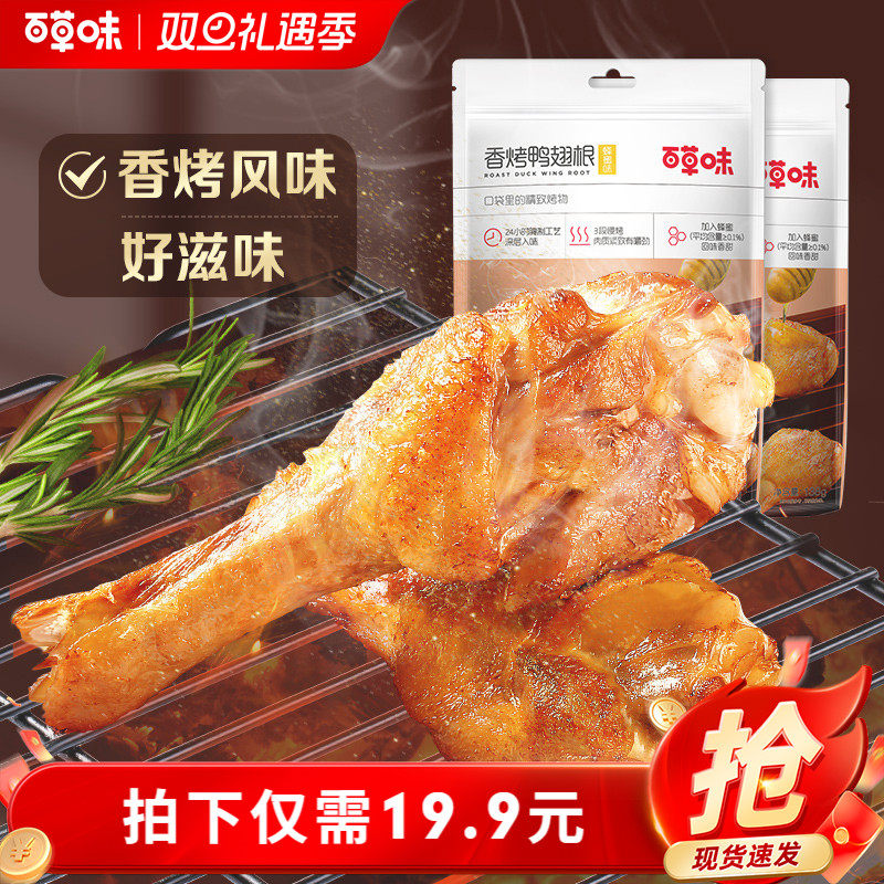-> 百草味香烤鸭小腿138gx2袋鸭翅根辣味休闲零食熟食小吃