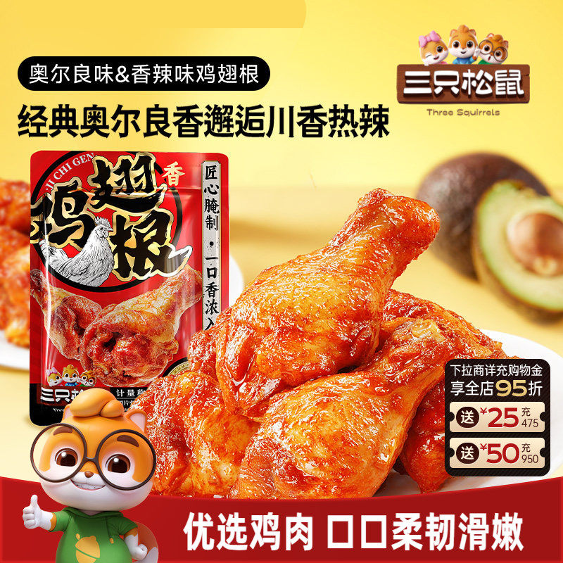 -> 三只松鼠_小鸡腿奥尔良/香辣味鸡翅根零食小吃特产休闲食品即食