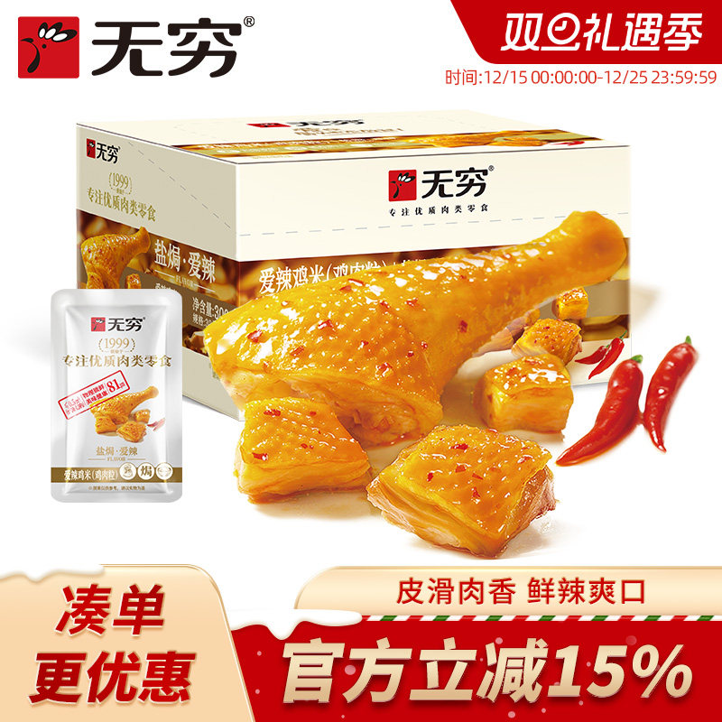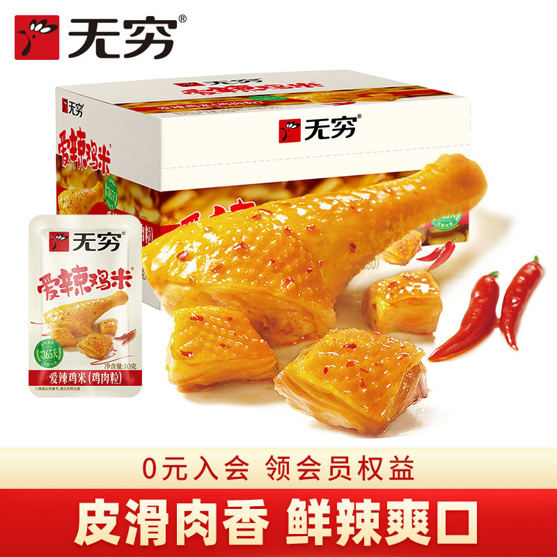 -> 无穷食品旗舰店爱辣鸡米300g/30小包鸡肉粒泡面伴侣搭档美味零食
