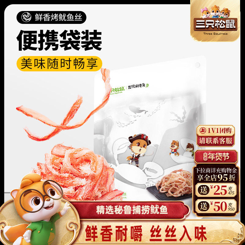 三只松鼠_鲜香烤鱿鱼丝休闲海味即食解馋小零食鱼类休闲食品小吃