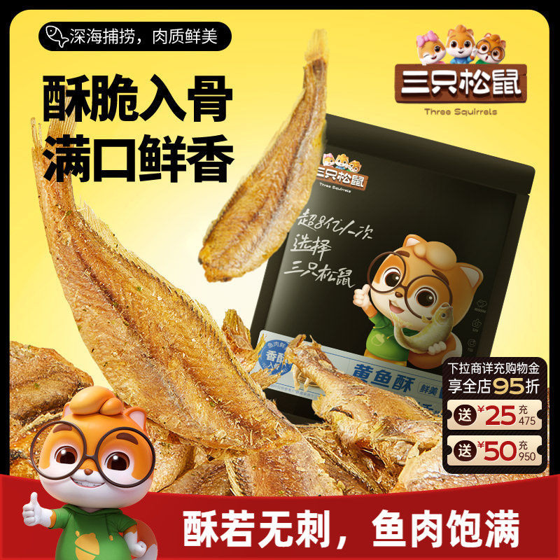 -> 三只松鼠_黄鱼酥250g/袋香酥小黄鱼海味熟食休闲零食小吃即食鱼干