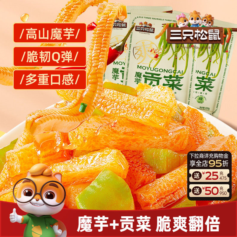 -> 三只松鼠贡菜魔芋200g魔芋爽即食香辣下饭菜解馋素食品小吃零食