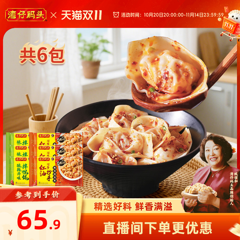 -> 湾仔码头馄饨抄手新品川香红油酸辣拌馄饨速食方便早餐230g*6袋