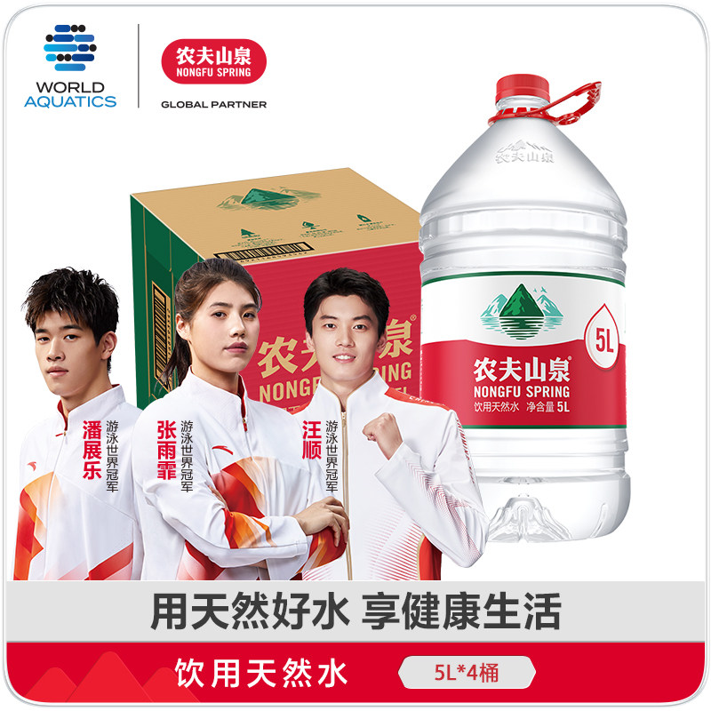 -> 农夫山泉官方旗舰店农夫山泉饮用水天然水红盖水桶装水5L*4桶整箱
