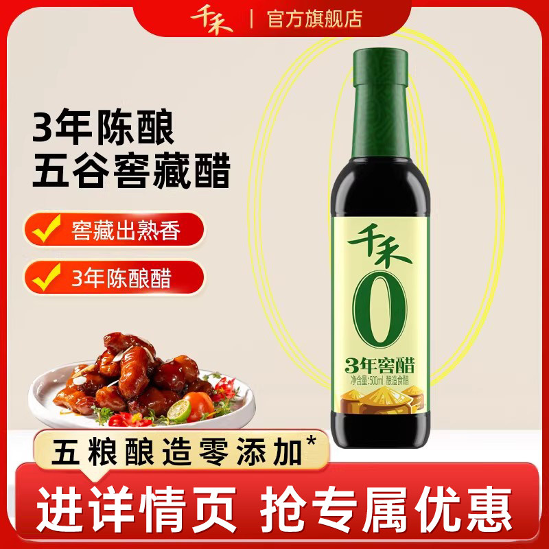 -> 千禾3年零添加窖醋500ml酿造陈醋食醋家用食用凉拌醋饺子醋旗舰店
