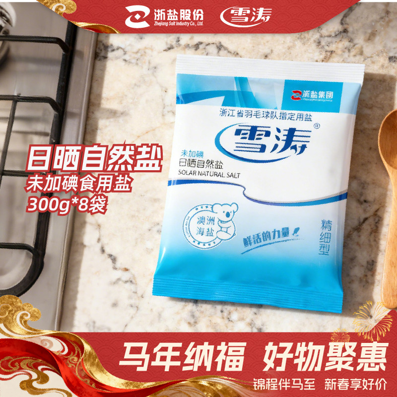 -> 雪涛澳洲日晒中粗海盐微潮300g*8无碘食盐家用未加碘不含碘抗结剂