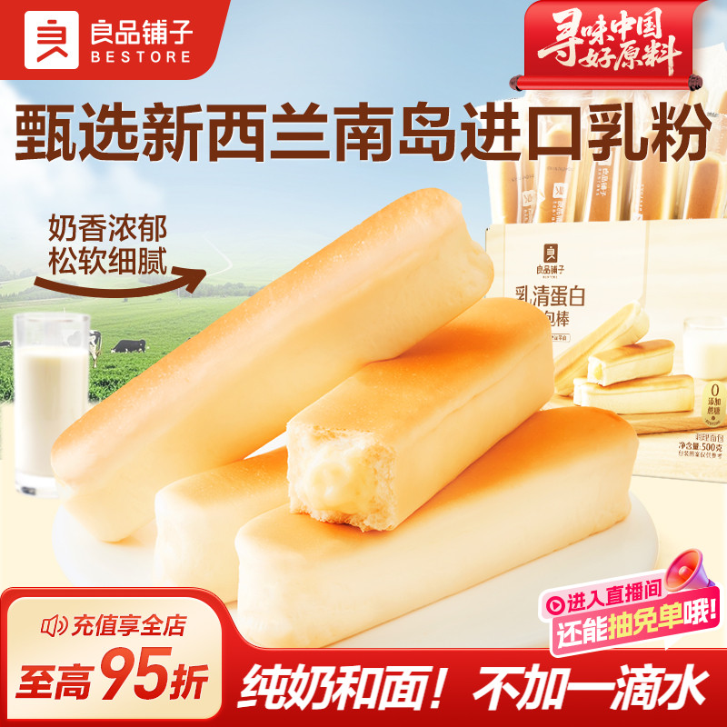 良品铺子乳清蛋白手撕面包棒早餐营养零食小吃全麦夹心吐司整箱