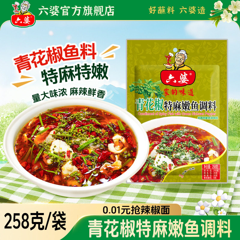 -> 六婆青花椒鱼调料258g麻辣水煮鱼调料 藤椒鱼酸菜鱼底料