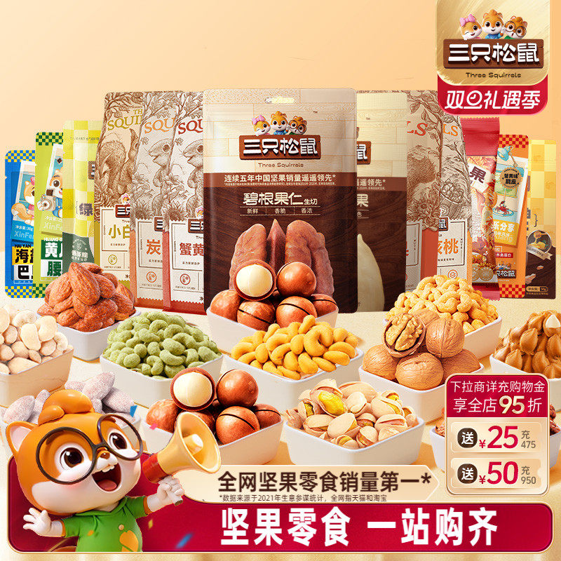 【69.9任选10件】三只松鼠坚果炒货组合夏威夷果巴旦木零食大礼包