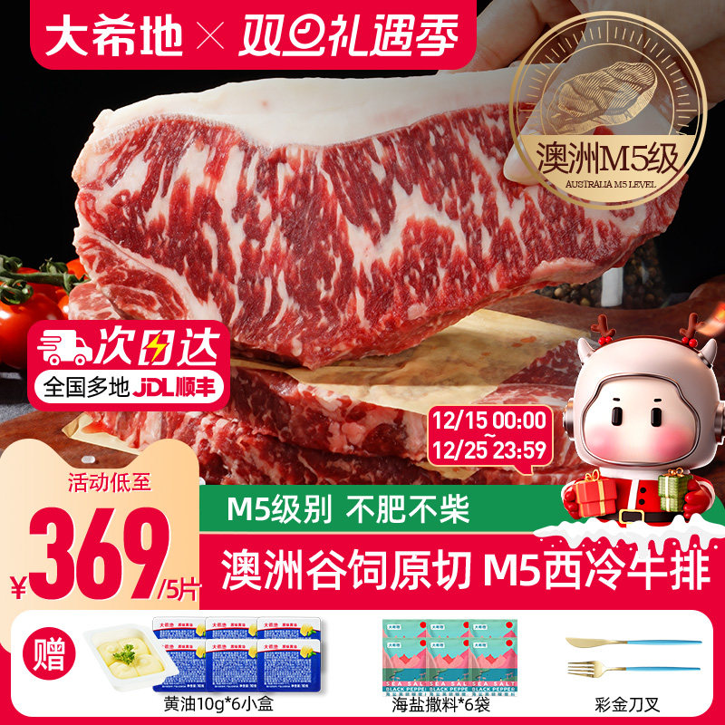 -> 【大希地】澳洲M5级谷饲原切西冷牛排新鲜雪花原切牛排
