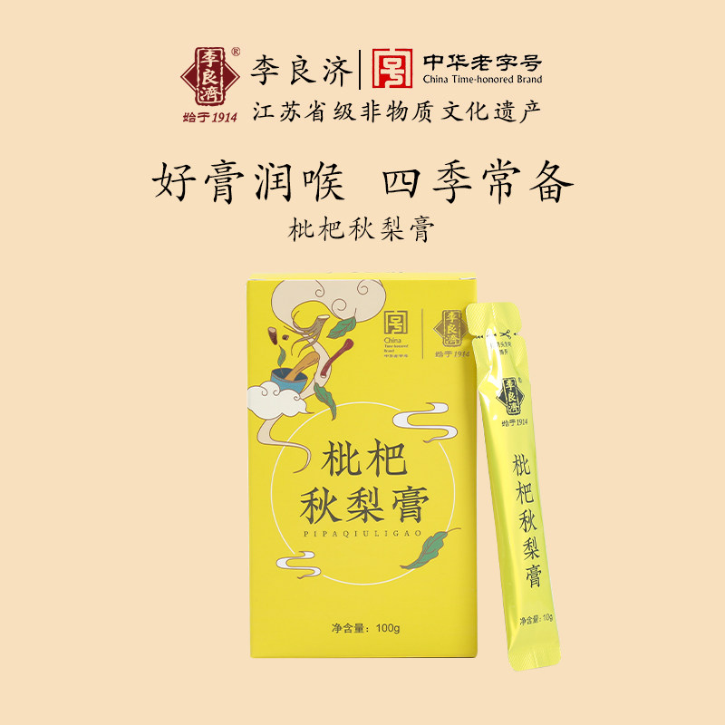 -> 李良济枇杷秋梨膏10gx10雪梨膏罗汉果薄荷老人儿童旗舰店正品膏方