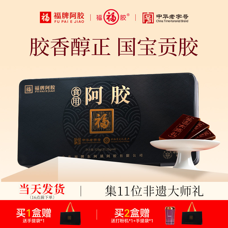 福牌阿胶官方旗舰店正品阿胶块食用阿胶125g阿胶块礼盒