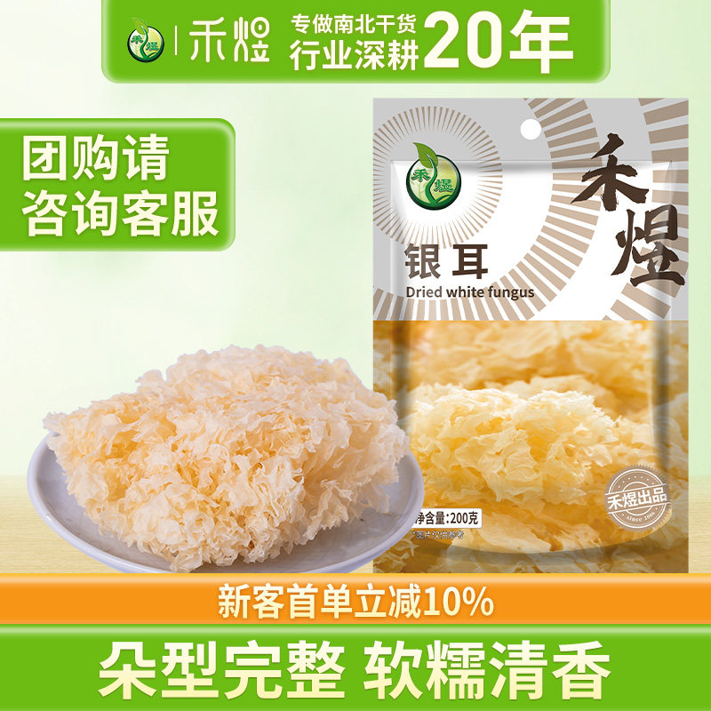 -> 禾煜银耳200g/150g干货白木耳银耳羹煲汤糯耳搭配莲子易煮易泡发