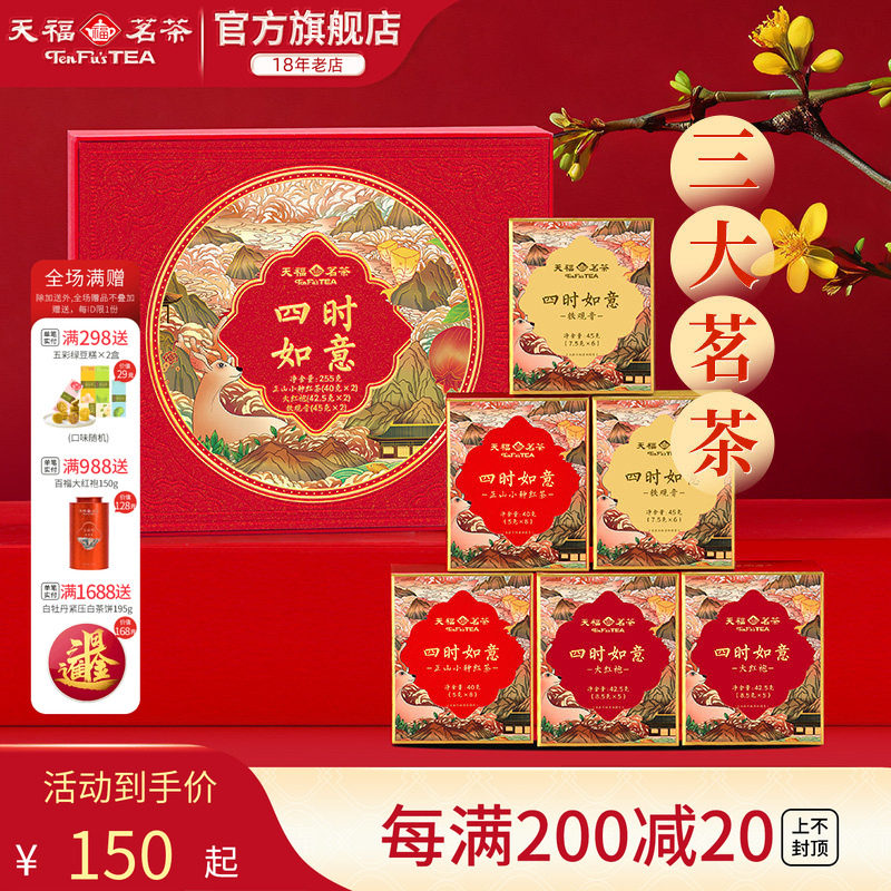 天福茗茶四时如意红茶大红袍铁观音组合茶叶礼盒年货送礼伴手礼