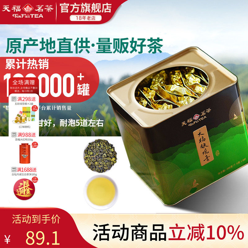 天福茗茶大铁罐清香型铁观音乌龙茶茶叶 大红袍滇红白茶茉莉花茶