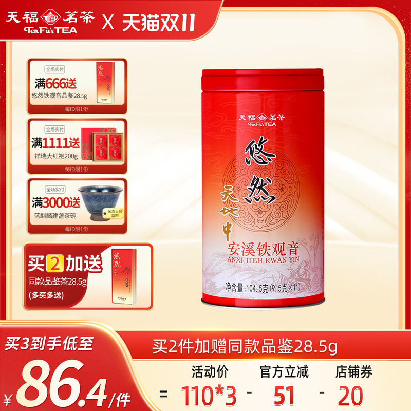 -> 天福安溪茶叶清香乌龙茶铁观音特级悠然罐装 2025新茶