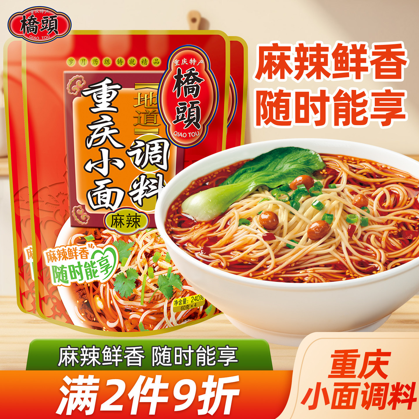 -> 桥头旗舰店官网桥头重庆小面调料240g*3袋方便煮面拌面调料酱料