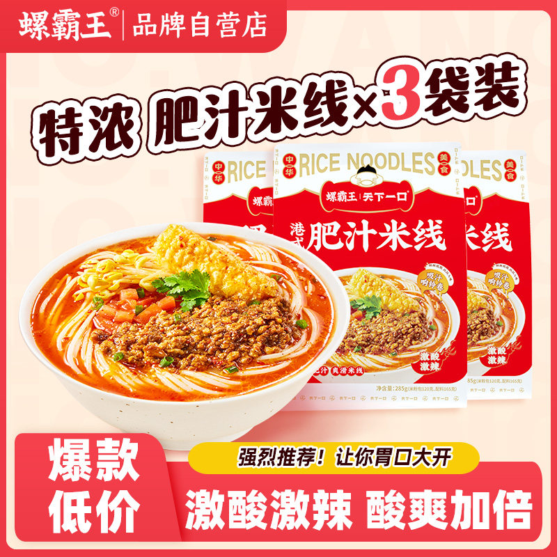 -> 螺霸王港式肥汁米线285g方便面泡面速食袋装宵夜酸辣汤米粉粉丝