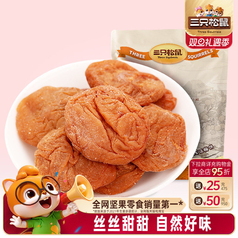 【三只松鼠_无核话梅饼60g】休闲青梅蜜饯果脯酸梅肉果干