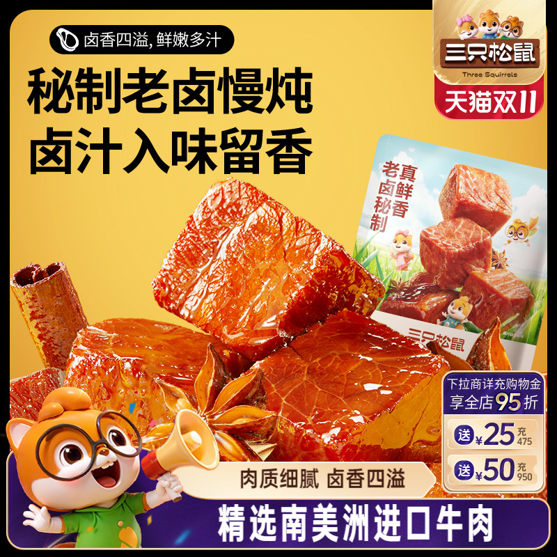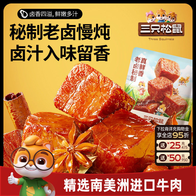 -> 三只松鼠_香卤牛肉酱卤牛肉干零食原切熟食肉脯黑椒即食休闲小吃