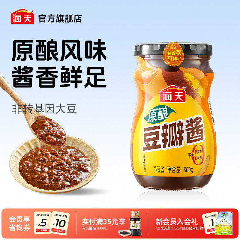 海天原酿豆瓣酱800g炒菜佐餐拌面下饭酱焖肉黄豆酱调味酱