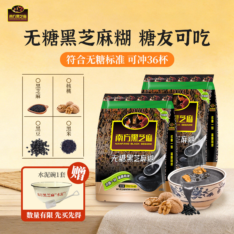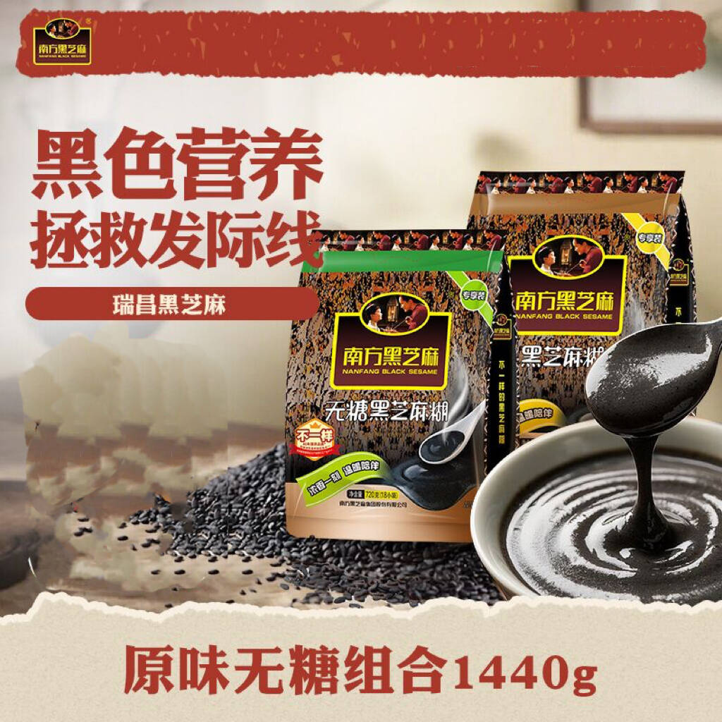 -> 南方黑芝麻无糖黑芝麻糊冲饮谷物营养五谷代餐粉1440g早餐杯组合