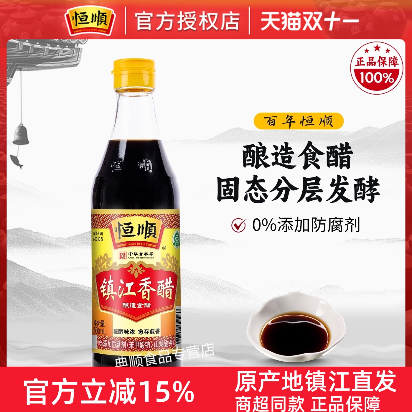 恒顺新B香镇江香醋500ml调味品镇江特产香醋凉拌蘸食炒菜零添加