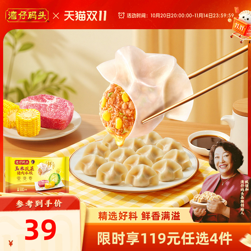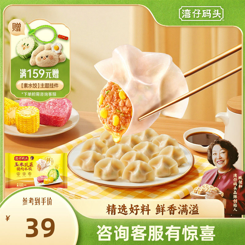 -> 【臧姑娘119元4件】湾仔码头玉米三鲜白菜芹菜水饺早餐饺子蒸煎饺