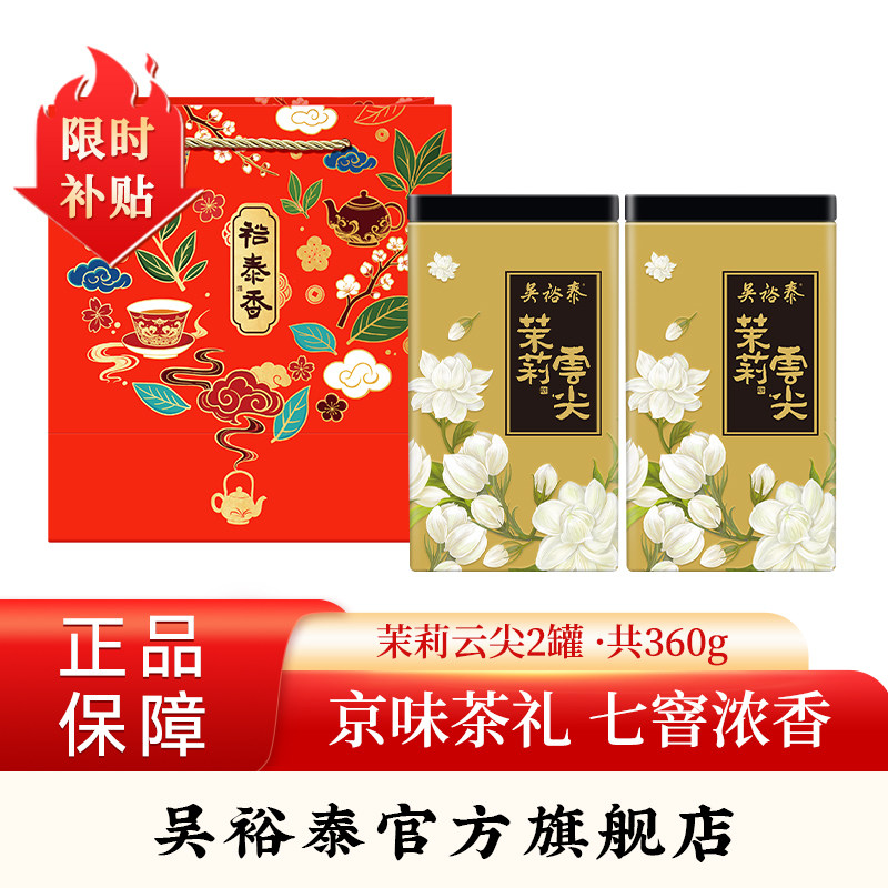 -> 吴裕泰茶叶浓香型特种茉莉花茶茉莉云尖罐装泡水饮品花草茶180g*2