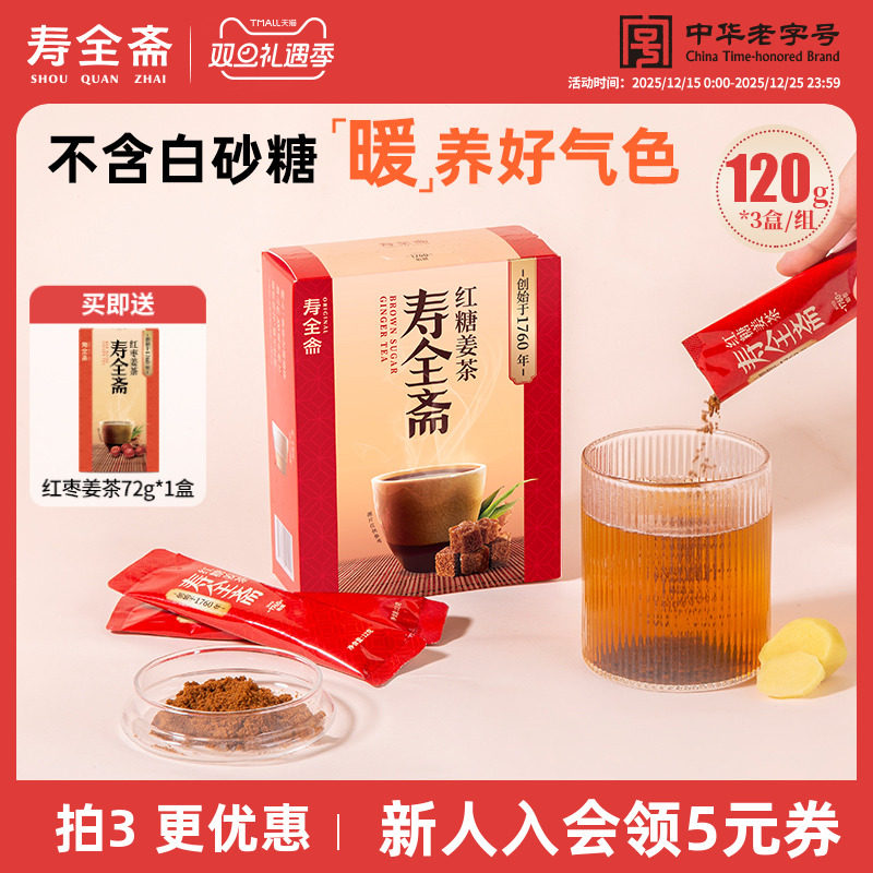 -> 寿全斋红糖姜茶大姨妈可喝独立包装送女友生姜姜枣茶120g*3盒