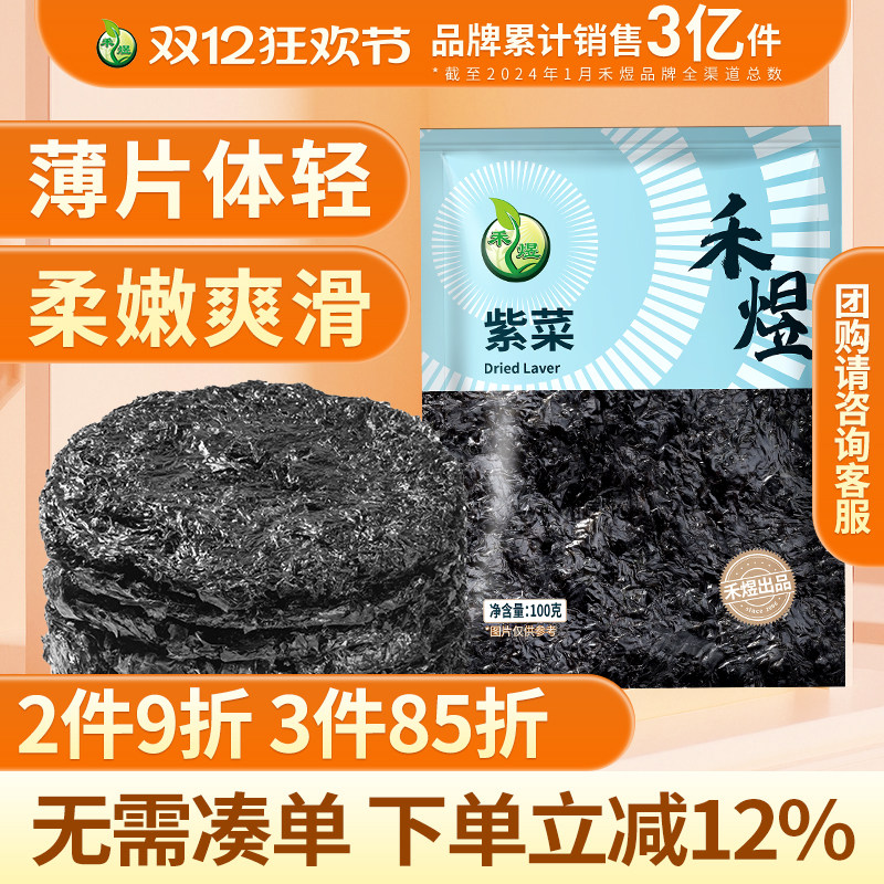 -> 禾煜紫菜100g干货紫菜蛋花汤虾皮汤馄饨汤料包原料非即食散装商用