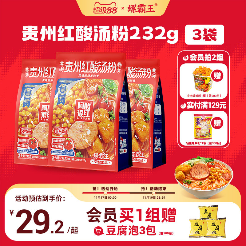 -> 螺霸王贵州红酸汤粉232g米粉米线酸辣粉午餐肉特产火锅酸辣粉面粉