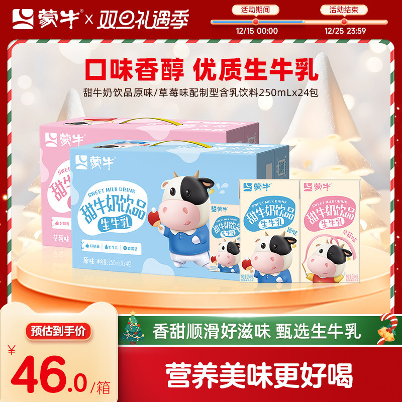 -> 【热卖】蒙牛甜牛奶饮品原味/草莓味250ml×24包 新老包装随机发