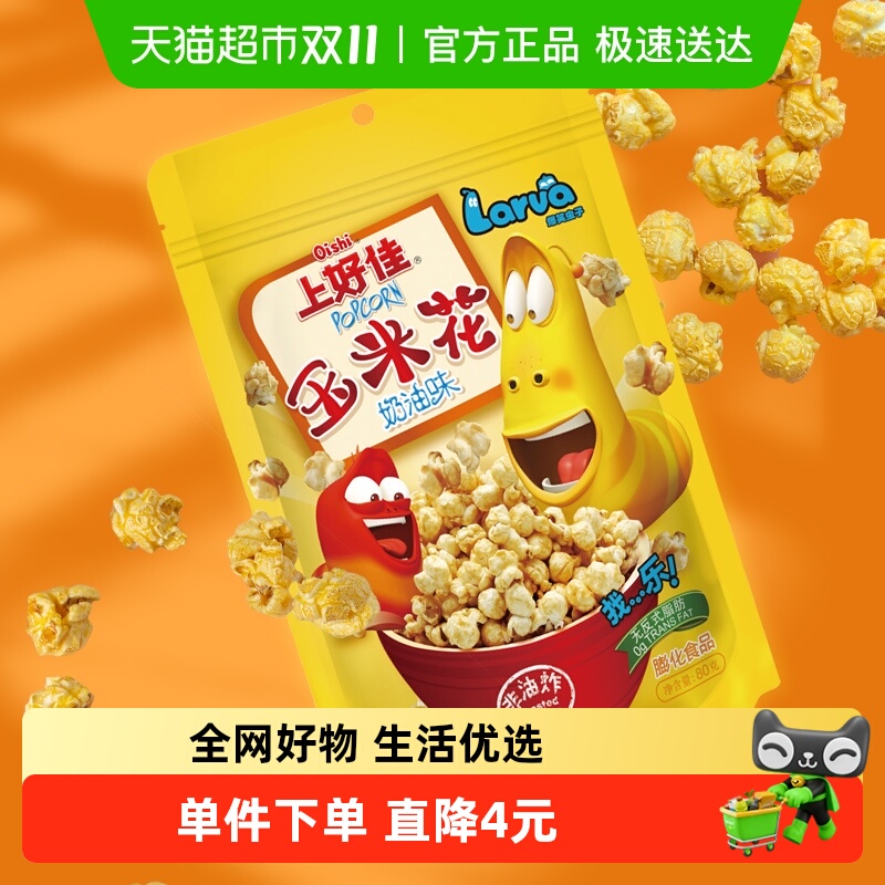 -> 上好佳玉米花80g/袋爆米花儿童休闲零食办公室小吃看电影追剧