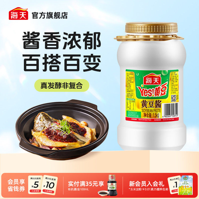 -> 海天Yes黄豆酱1.5kg东北大酱蒸排骨烧烤拌面酱家用商用手抓饼配酱