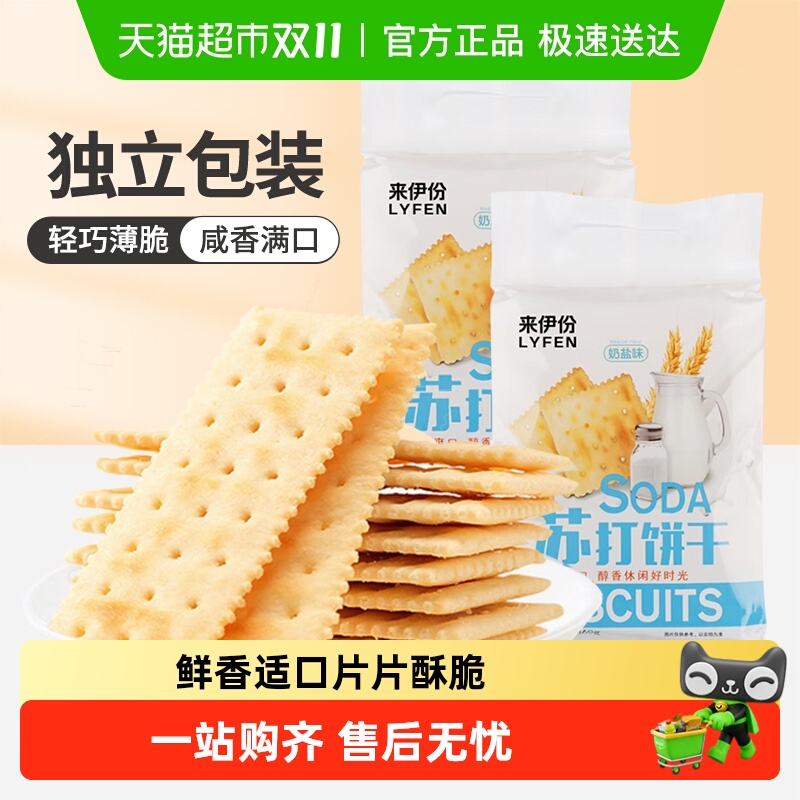 -> 包邮来伊份苏打饼干休闲零食奶盐味薄脆饼干下午茶点心