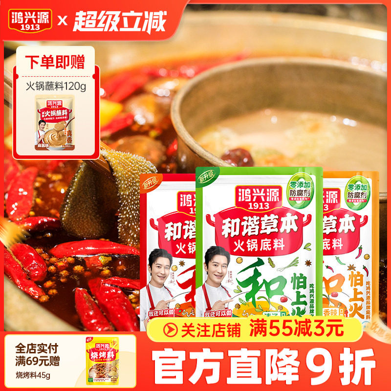 鸿兴源草本和谐清汤火锅底料牛油火锅麻辣味海鲜味不上火160g*3袋