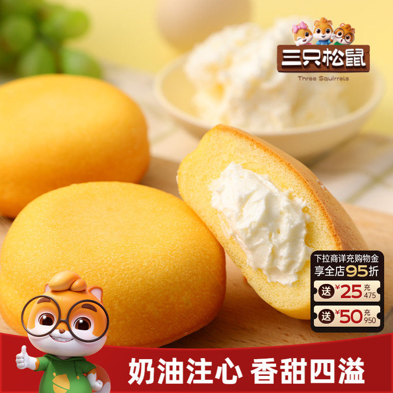 -> 三只松鼠_泡芙蛋糕400g 面包整箱早餐糕点心夹心解馋零食饱腹