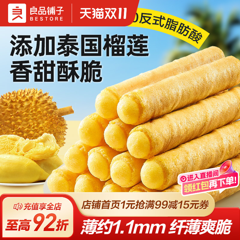 -> 良品铺子榴莲夹心蛋卷香芋蛋卷鸡蛋卷酥夹椰子卷饼干零食