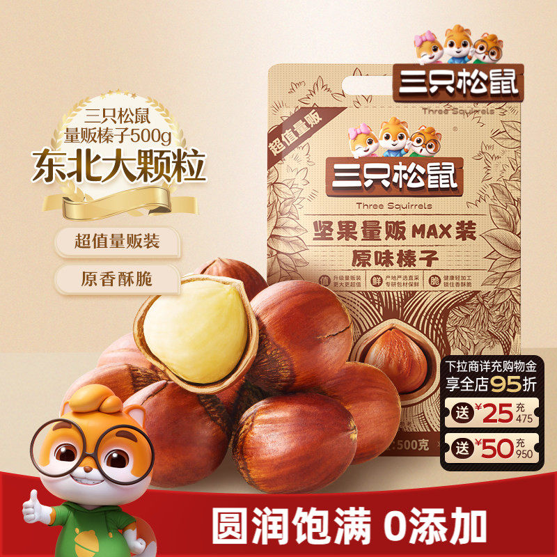 -> 三只松鼠_量贩袋装榛子500g东北特产大颗粒坚果干果休闲零食炒货