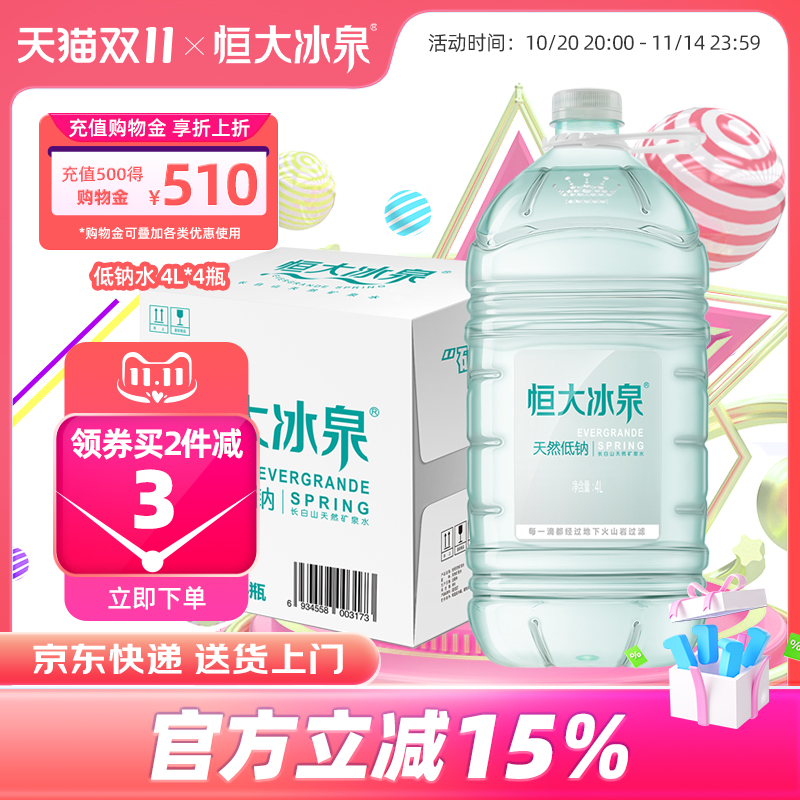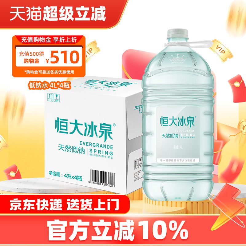 -> 恒大冰泉 低钠水长白山天然矿泉水大桶装饮用水4L*4瓶整箱批特价
