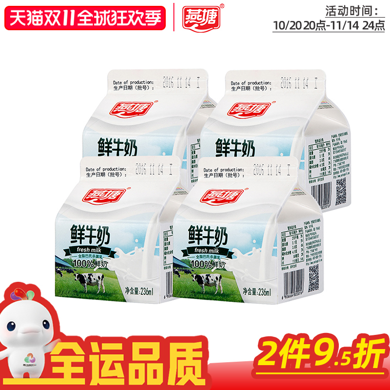 -> 燕塘低温鲜牛奶236ml装 全脂鲜奶巴氏奶生态牧场营养早餐奶新鲜